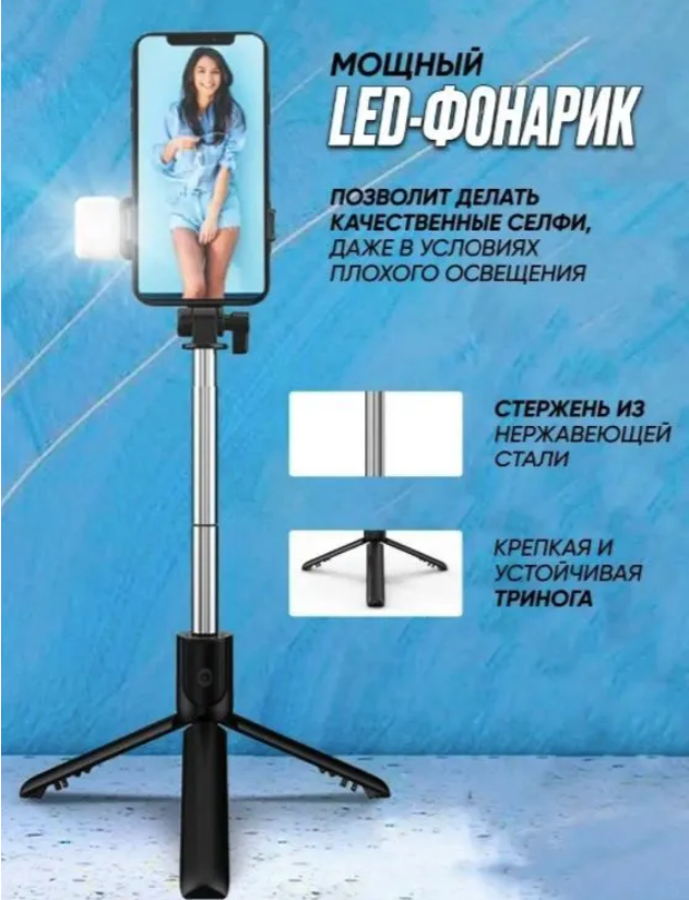 Отзывы на Монопод трипод 3 в 1 c подсветкой и съемным Bluetooth пультом управления
