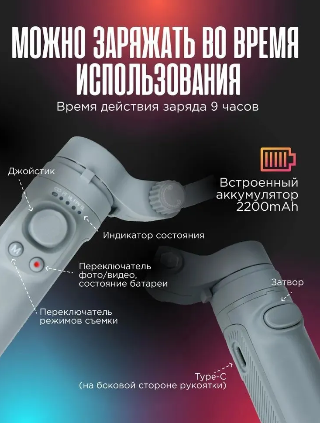 Стабилизатор для телефона\ THREE-AXIS FOLDING , штатив, трипод для смартфона / Многофункциональная селфи палка информация: