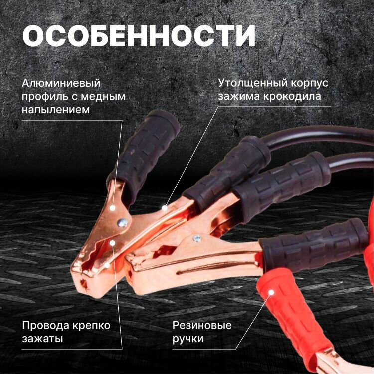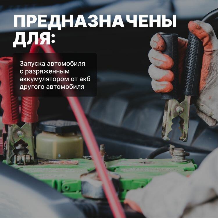 Провода для прикуривания автомобиля, 2 метра, 600А, 16мм2, резина.