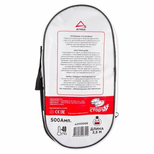 Отзывы на Провода прикуривания АКБ 500А 2,5м в сумке (12В/24В, d-9мм 212жил -40С) ARNEZI A0102009