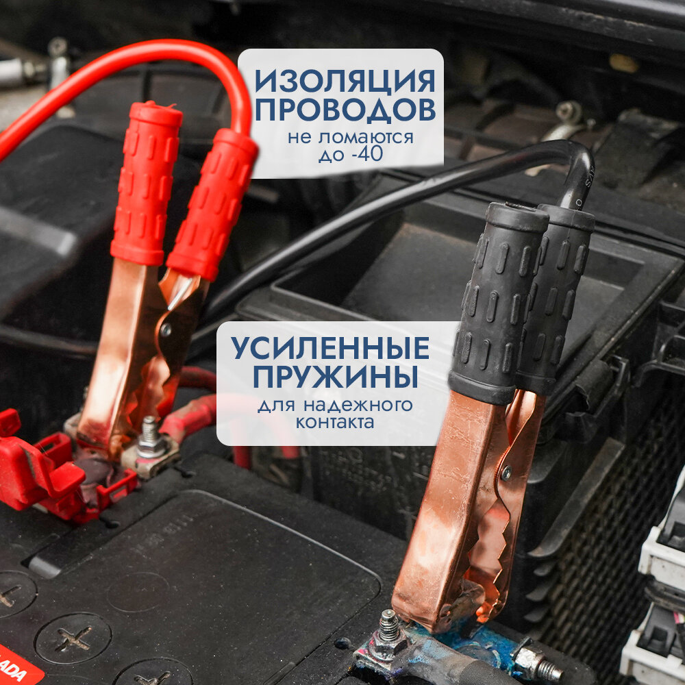 Провода для прикуривания автомобиля, 2 метра, 600А, 16мм2, резина.
