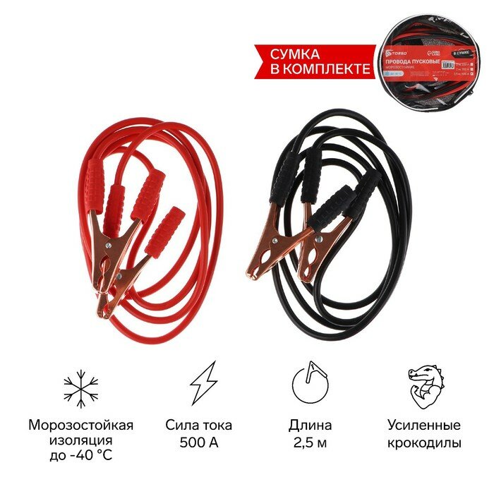 Провода пусковые для прикуривания автомобиля TORSO, 500 А, 2,5 метра, сумка информация: