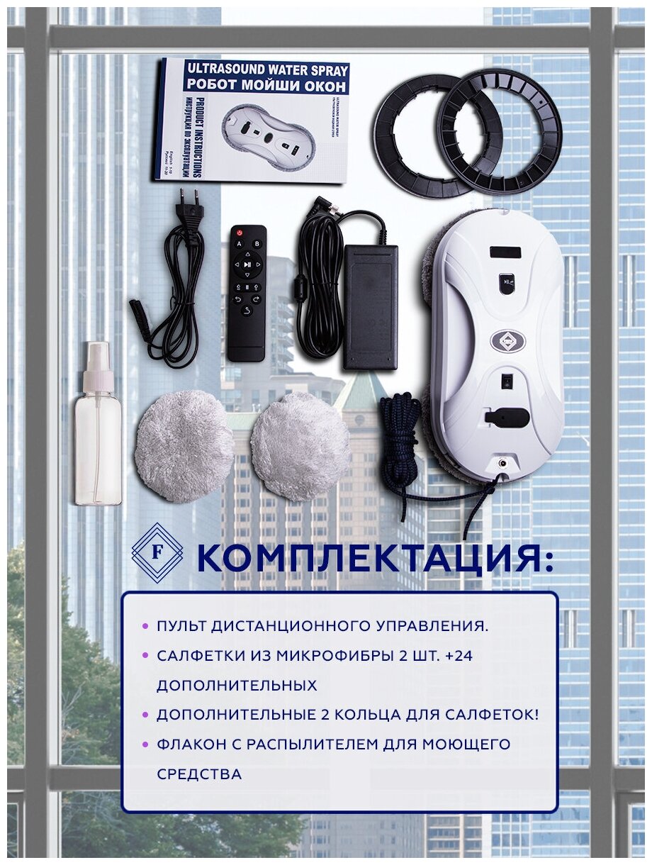 Робот-мойщик окон, с распылителем, страховочный шнур 4 м, пульт ДУ, 90 Вт, 10 сменных тряпок