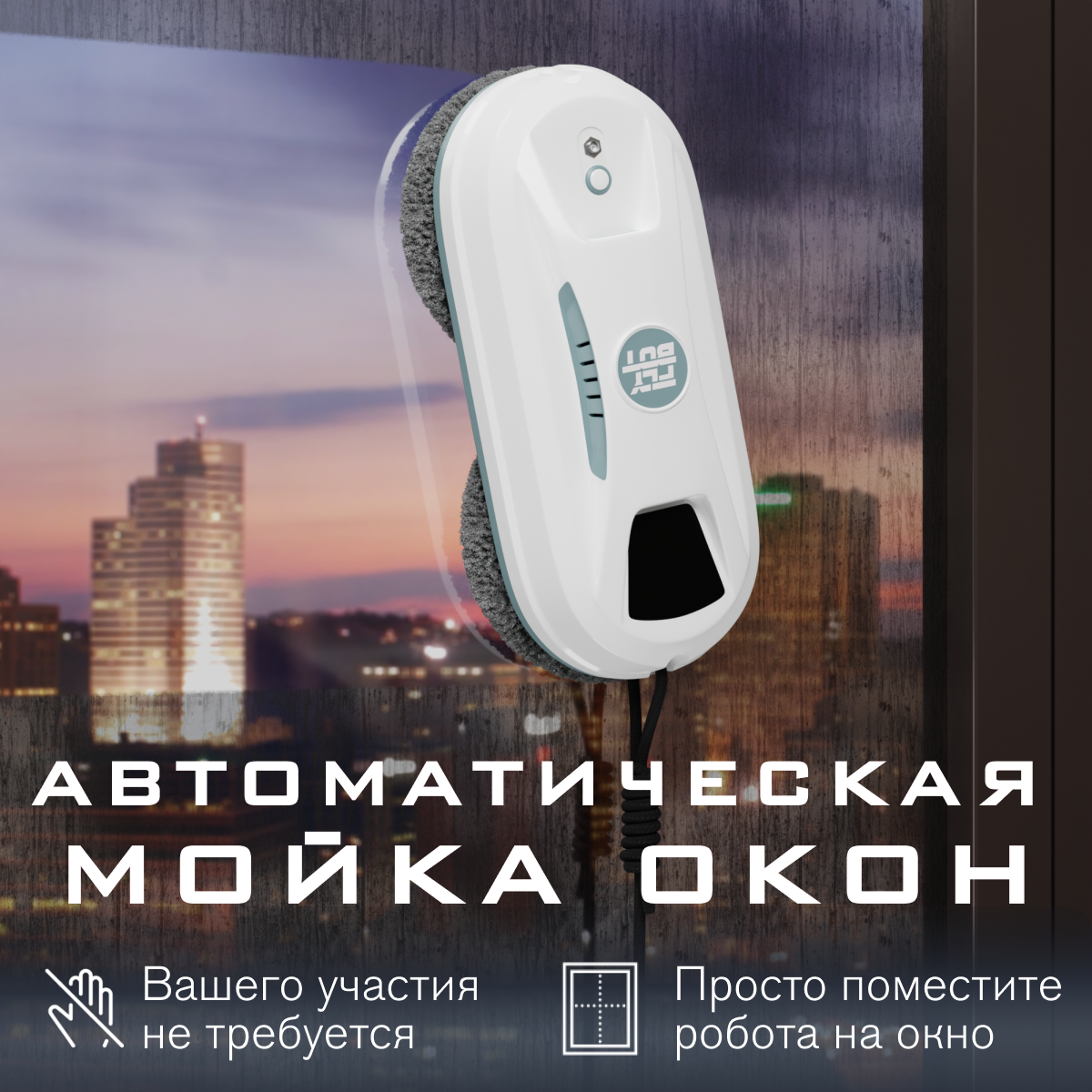 Робот-мойщик окон, с распылителем, страховочный шнур 4 м, пульт ДУ, 90 Вт, 10 сменных тряпок