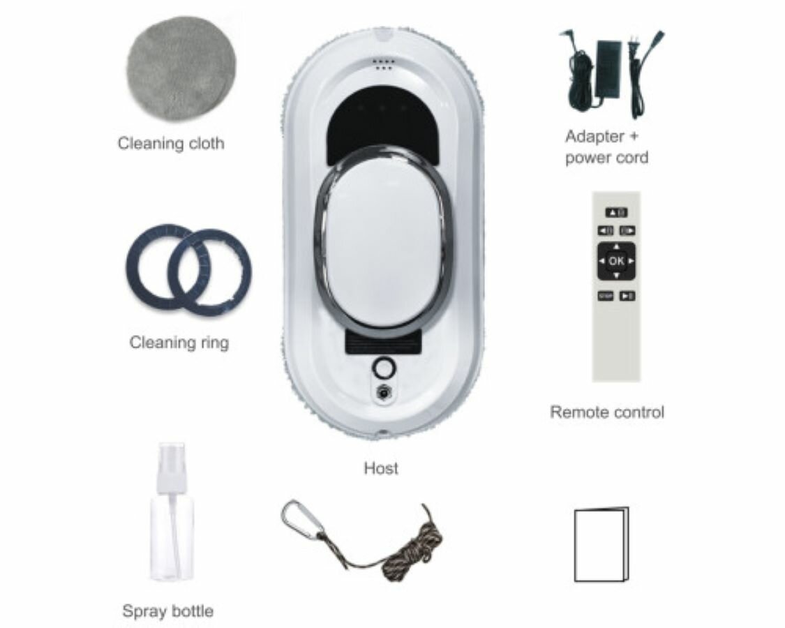 Робот-мойщик окон, с распылителем, страховочный шнур 4 м, пульт ДУ, 90 Вт, 10 сменных тряпок