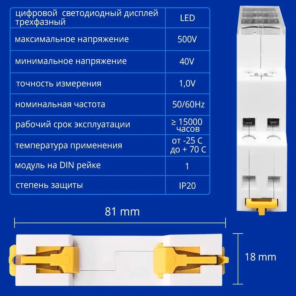 Отзывы на Монитор переменного тока, вольтметр цифровой трехфазный, на DIN-рейку