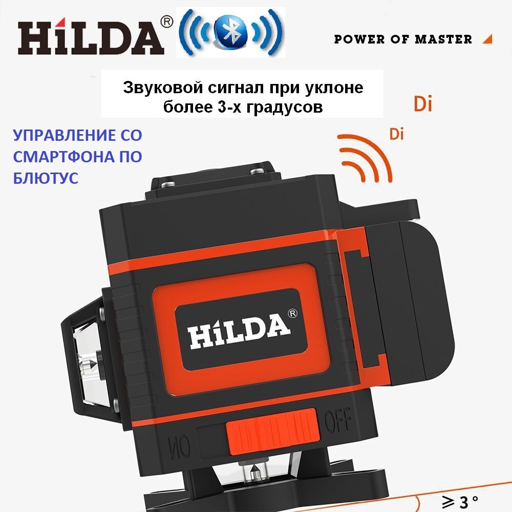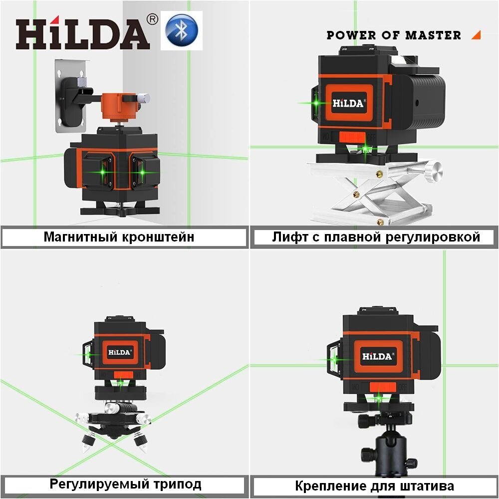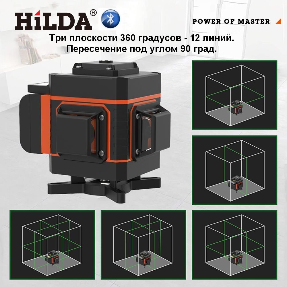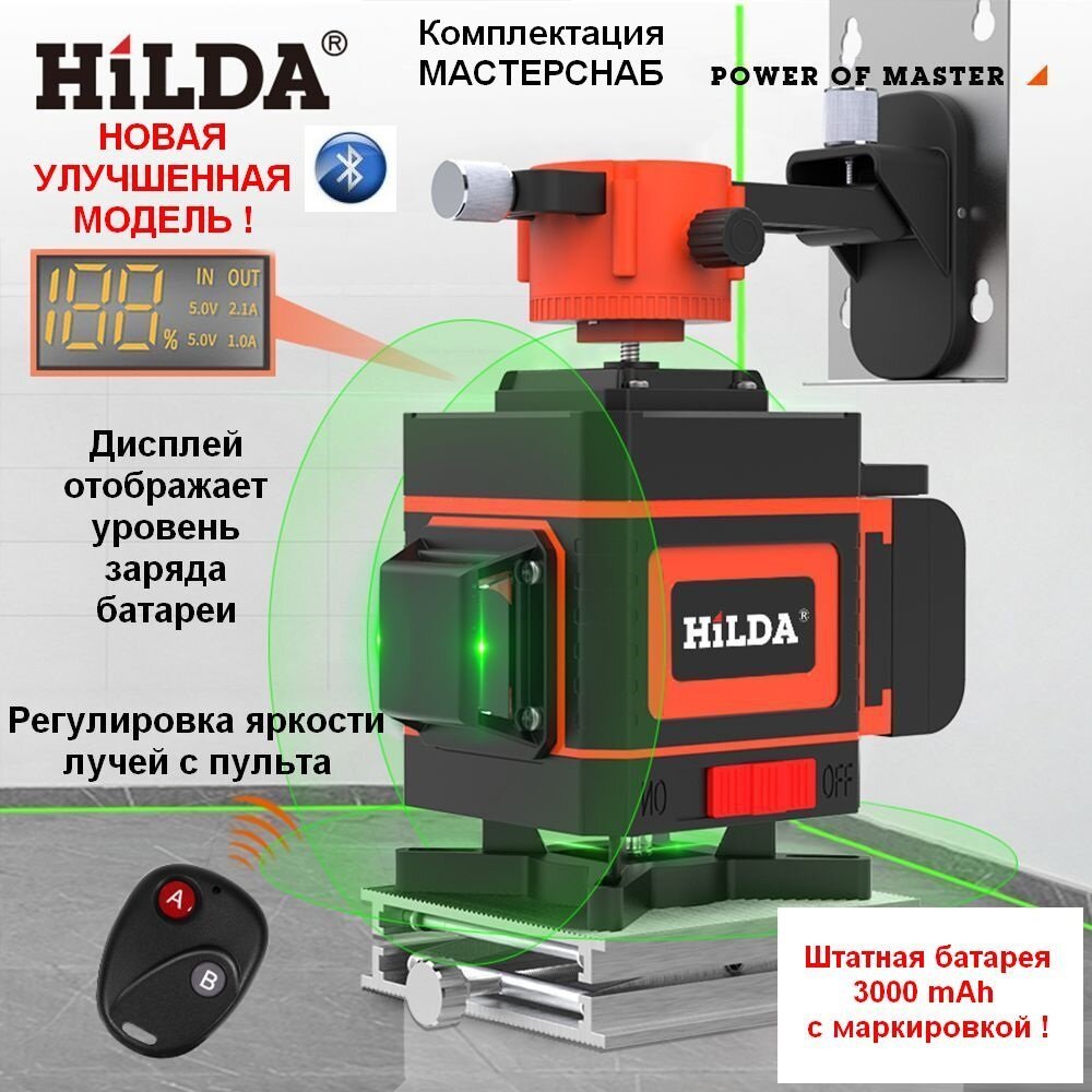10 цен на Лазерный блютус уровень HiLDA 3D х 12 линий, акб 3000, дисплей, пульт, лазер откалиброван
