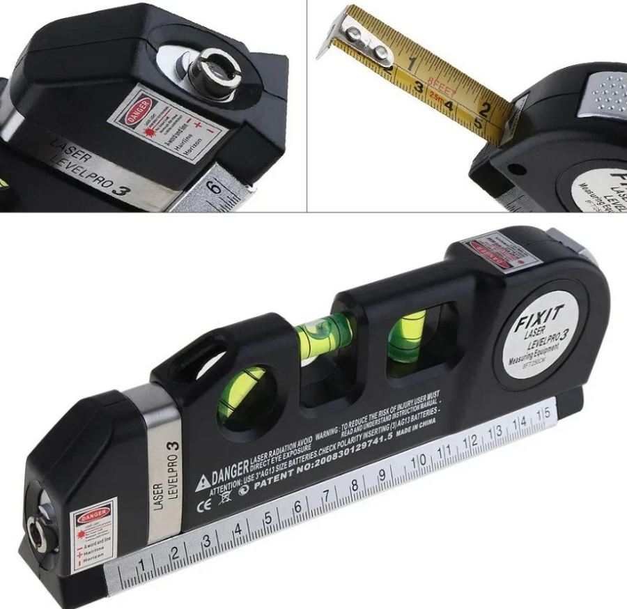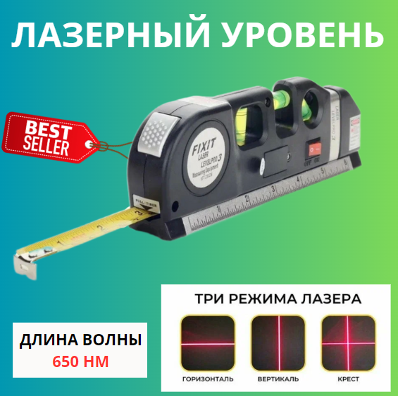 Лазерный уровень 4в1 с линейкой и рулеткой 2.5м, нивелир