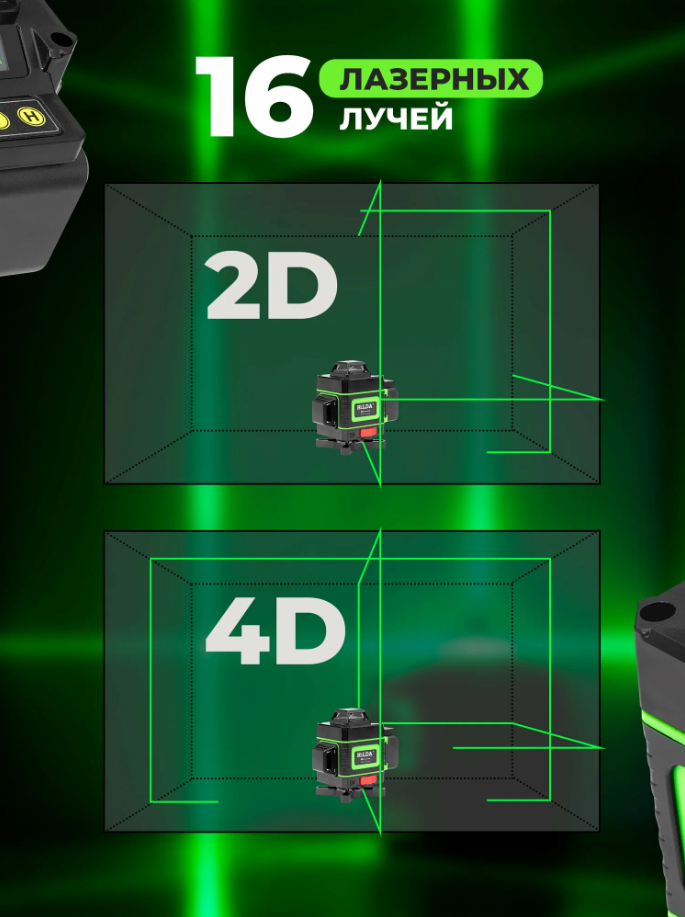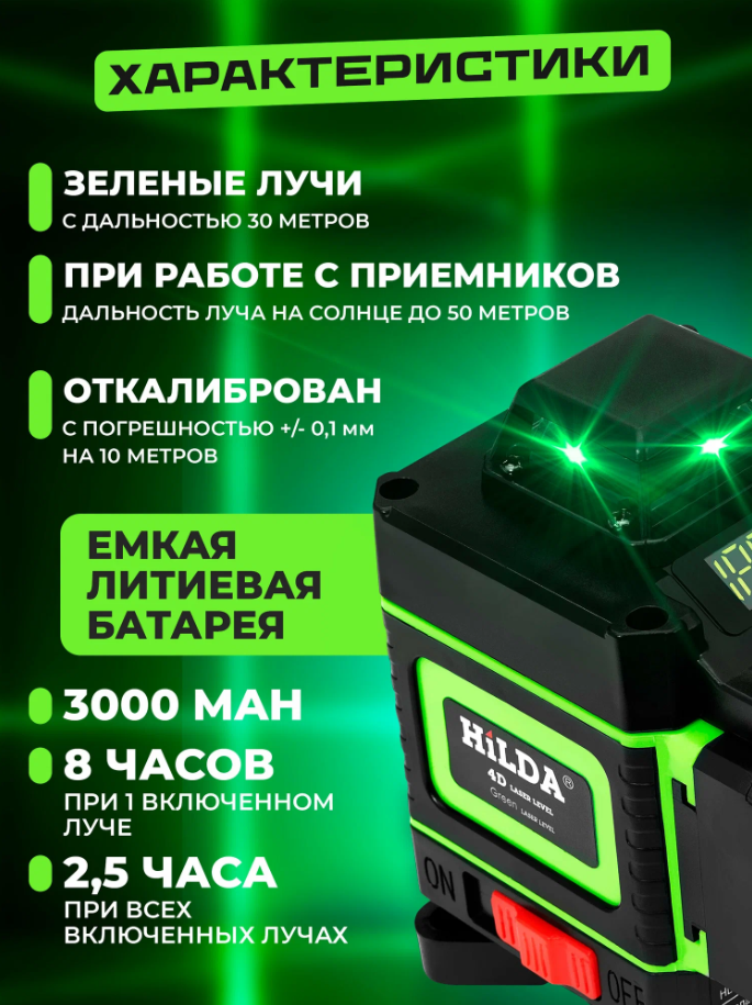 Лазерный нивелир 4D HiLDA 16 линий с двумя аккумуляторами информация:
