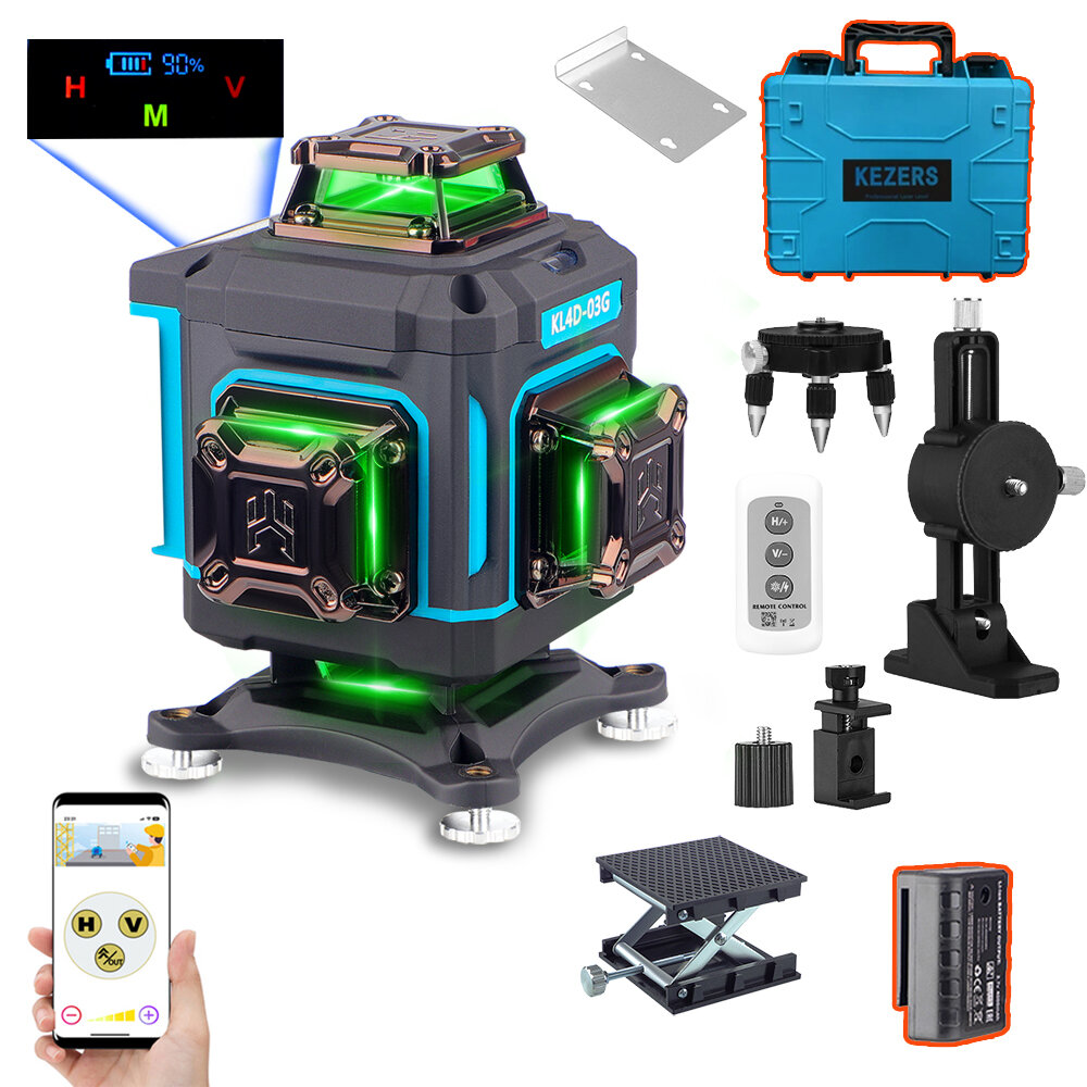 10 цен на Лазерный уровень/нивелир Kezers KL4D-03G, Зеленый луч 360 4D 16 Линий Чемодан