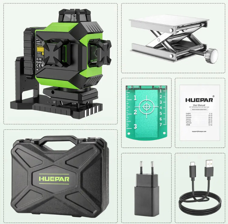 Лазерный уровень Huepar P04CG 4D, 360, 16 лучей