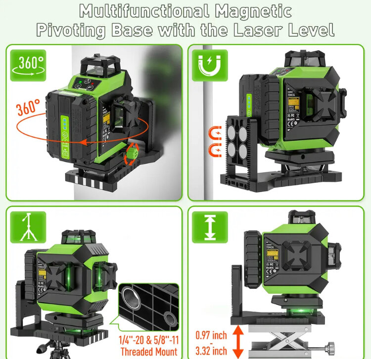| Функции | нижний горизонт / отключение выравнивания / поворотное основание |