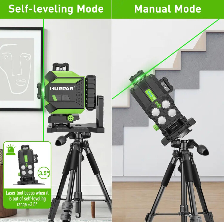 Лазерный уровень Huepar B03CG 3D 360 Зеленый луч