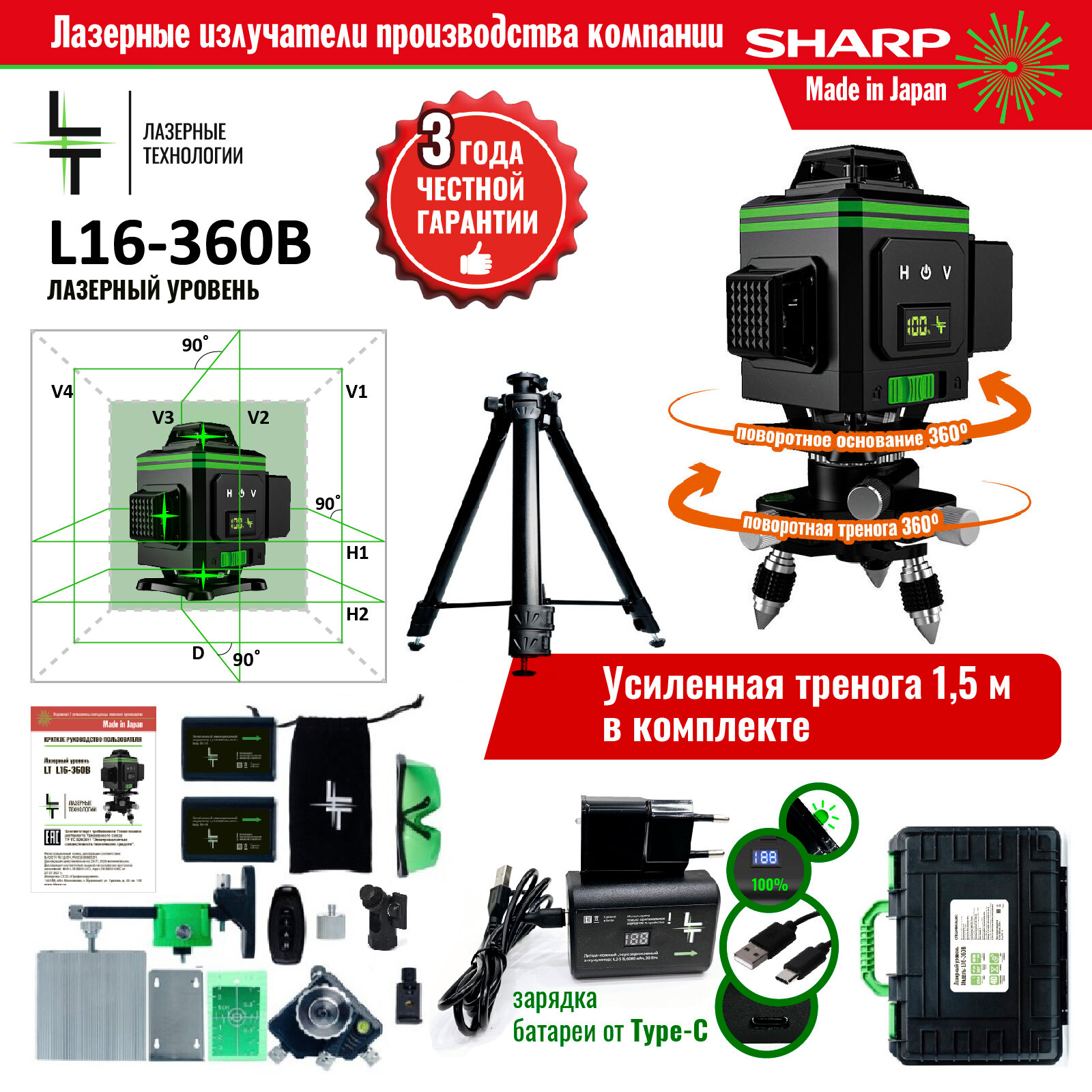 LT Профессиональный Лазерный уровень L16-360М + тренога 1.6м L16-360M/1.6м