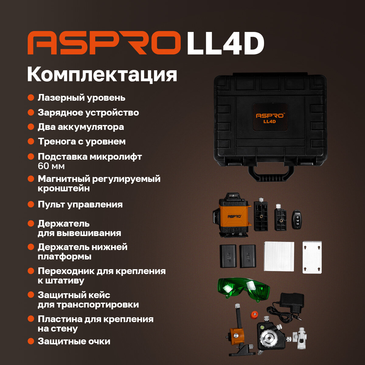 Лазерный уровень (нивелир) ASPRO-LL4D® информация: