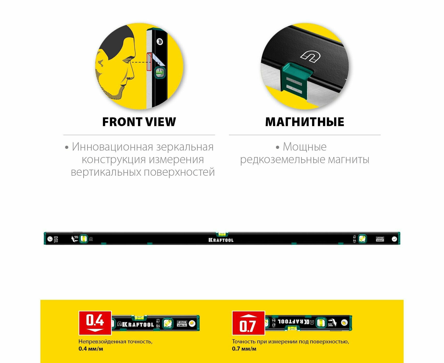 KRAFTOOL 1500 мм, усиленный профиль, с зеркальным глазком, магнитный уровень (34785-150) информация: