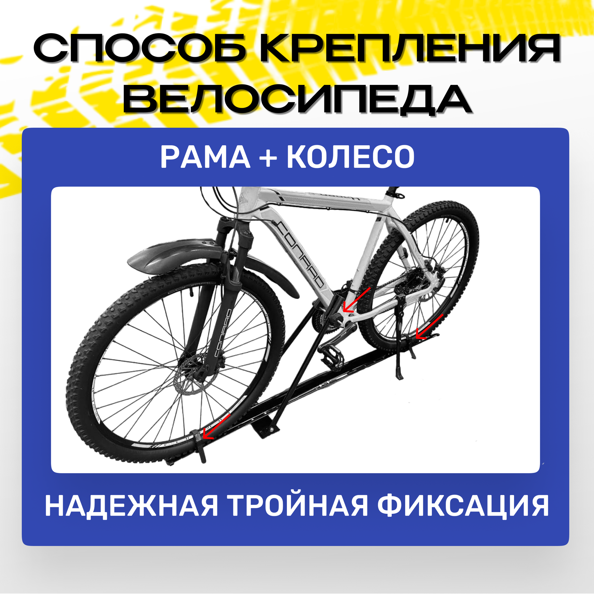 | Крепление велосипеда | рама + колесо |