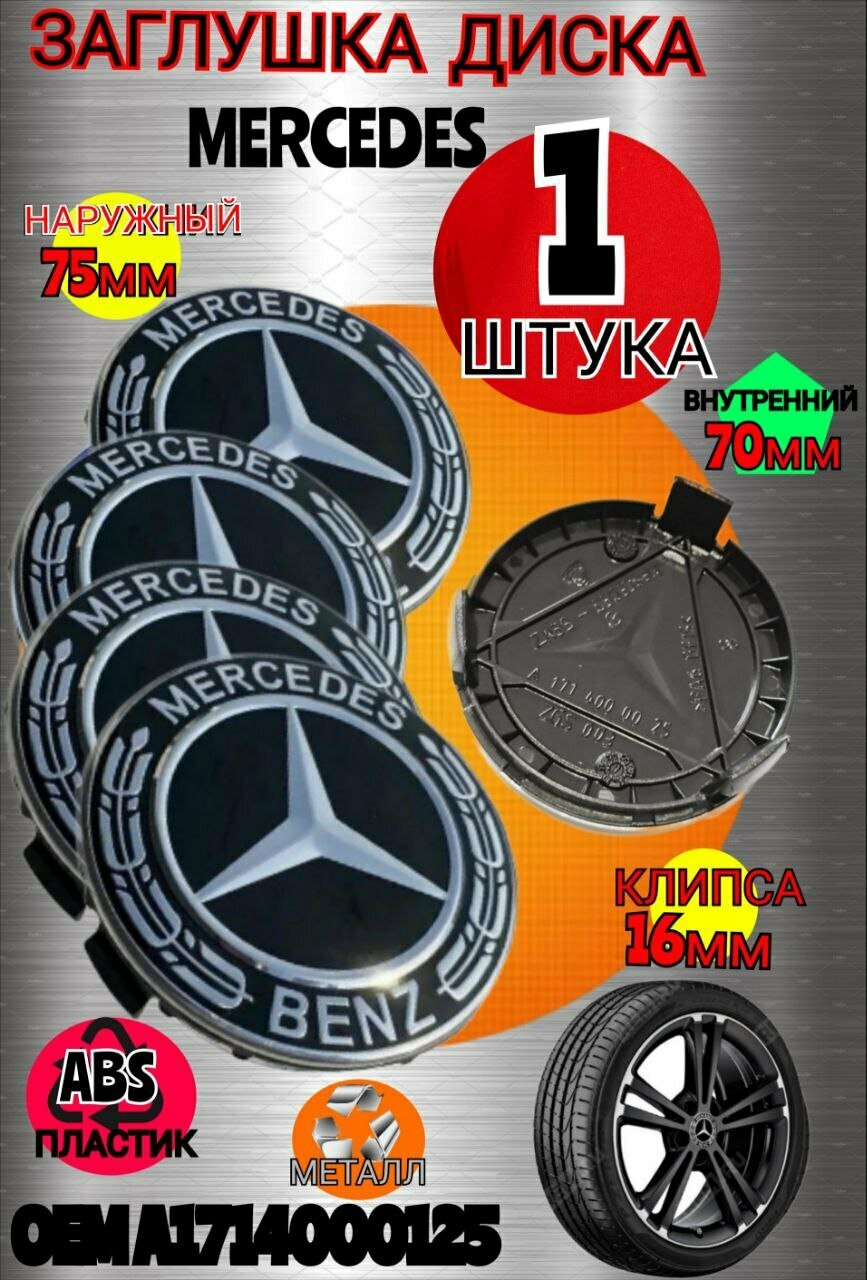 Отзывы на Заглушка диска/Колпачок ступицы литого диска Мерседес Mercedes-Benz мм 70-75 цвет черный хром