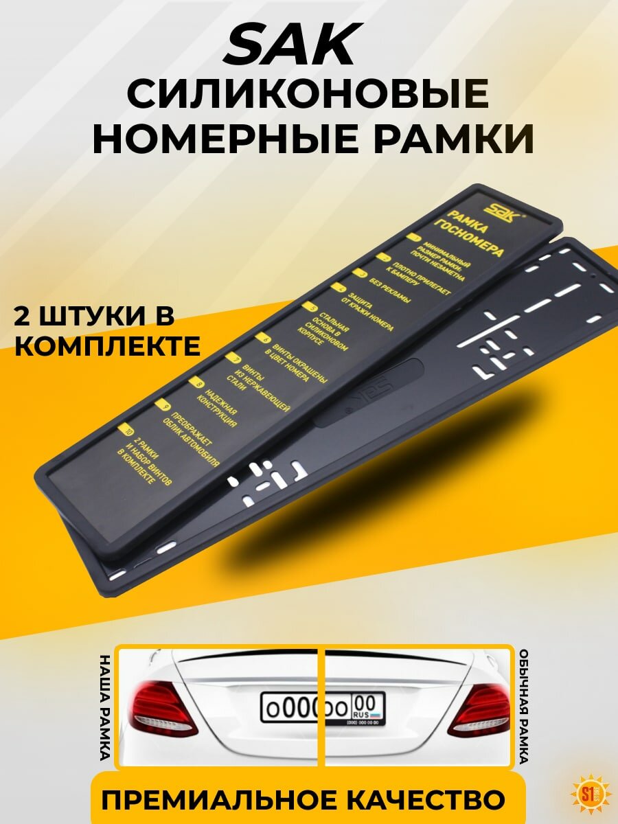 Рамки силиконовые SAK для номерного знака комплект 2 шт антивандальная со стальной основой (адаптер)