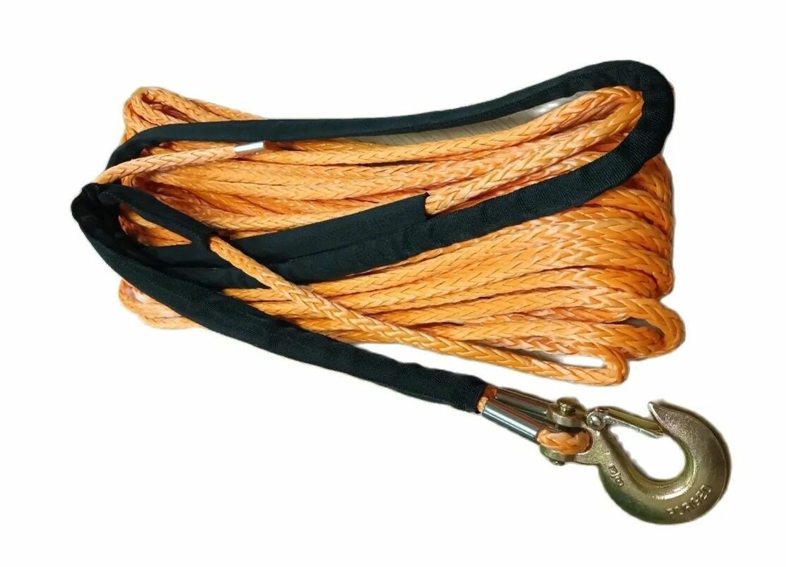 Трос синтетический для автомобильной лебедки 10 мм 25 м с крюком и коушем оранжевый информация: