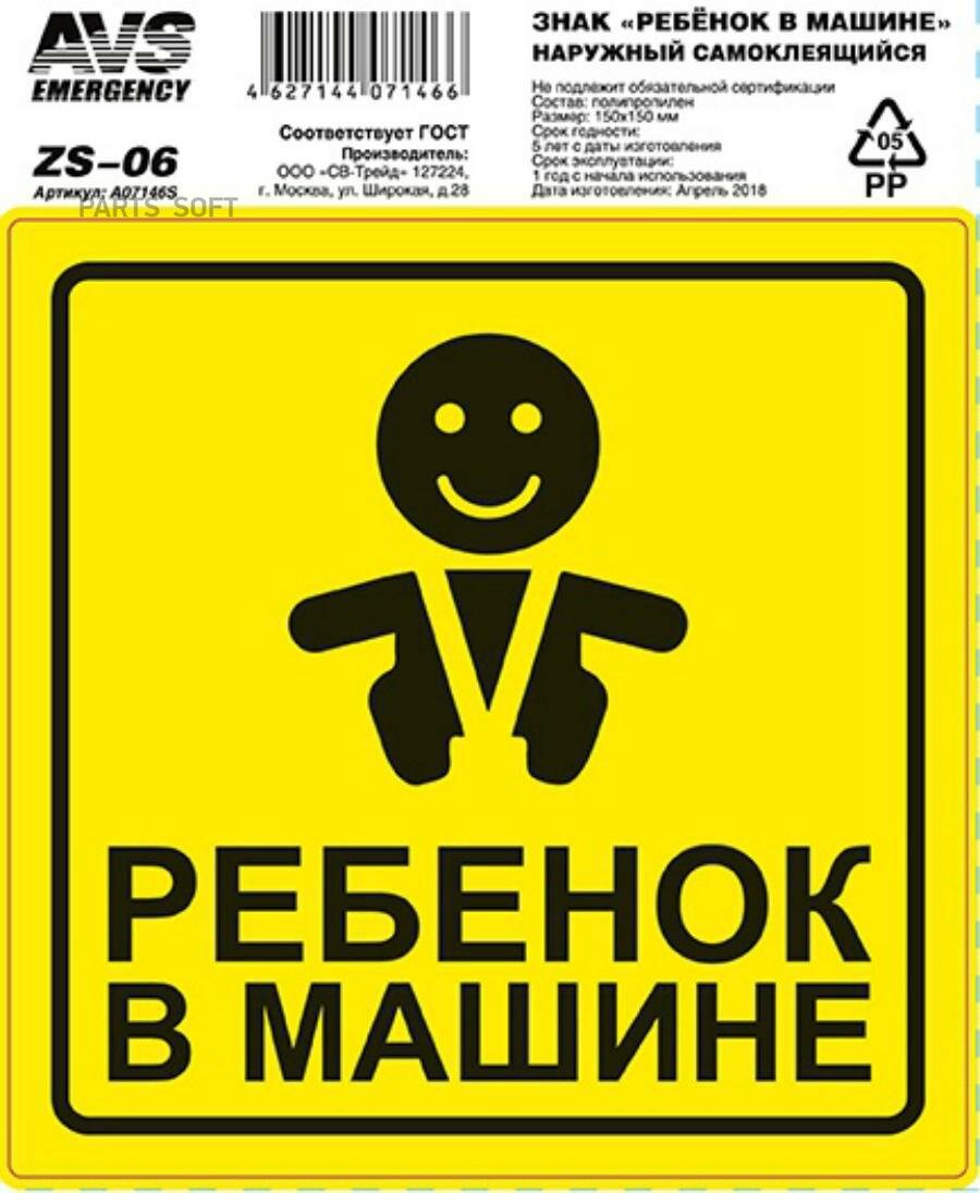 A07146s_знак! 'Ребёнок В Машине' Гост Наруж.Самоклеящ. 150x150 Инд.Упак.1 Шт. AVS арт. A07146S информация: