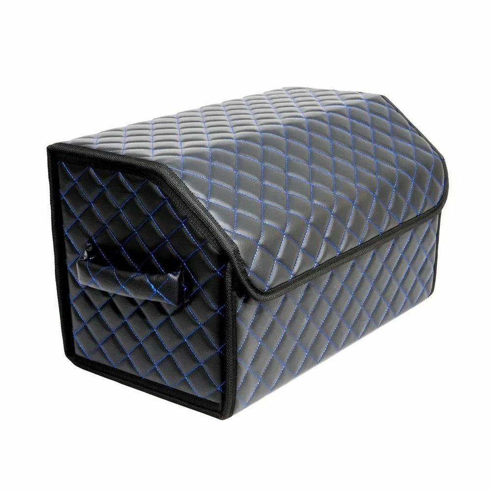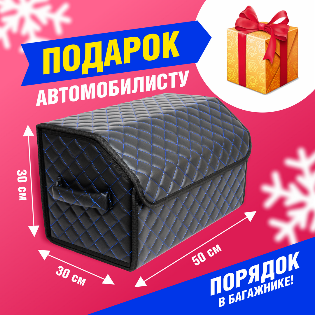 10 цен на Сумка - Органайзер в багажник автомобиля из экокожи (черный с синей строчкой, 50х30х30)