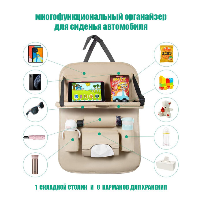 Отзывы на Органайзер на спинку переднего сиденья автомобиля FOE, бежевый