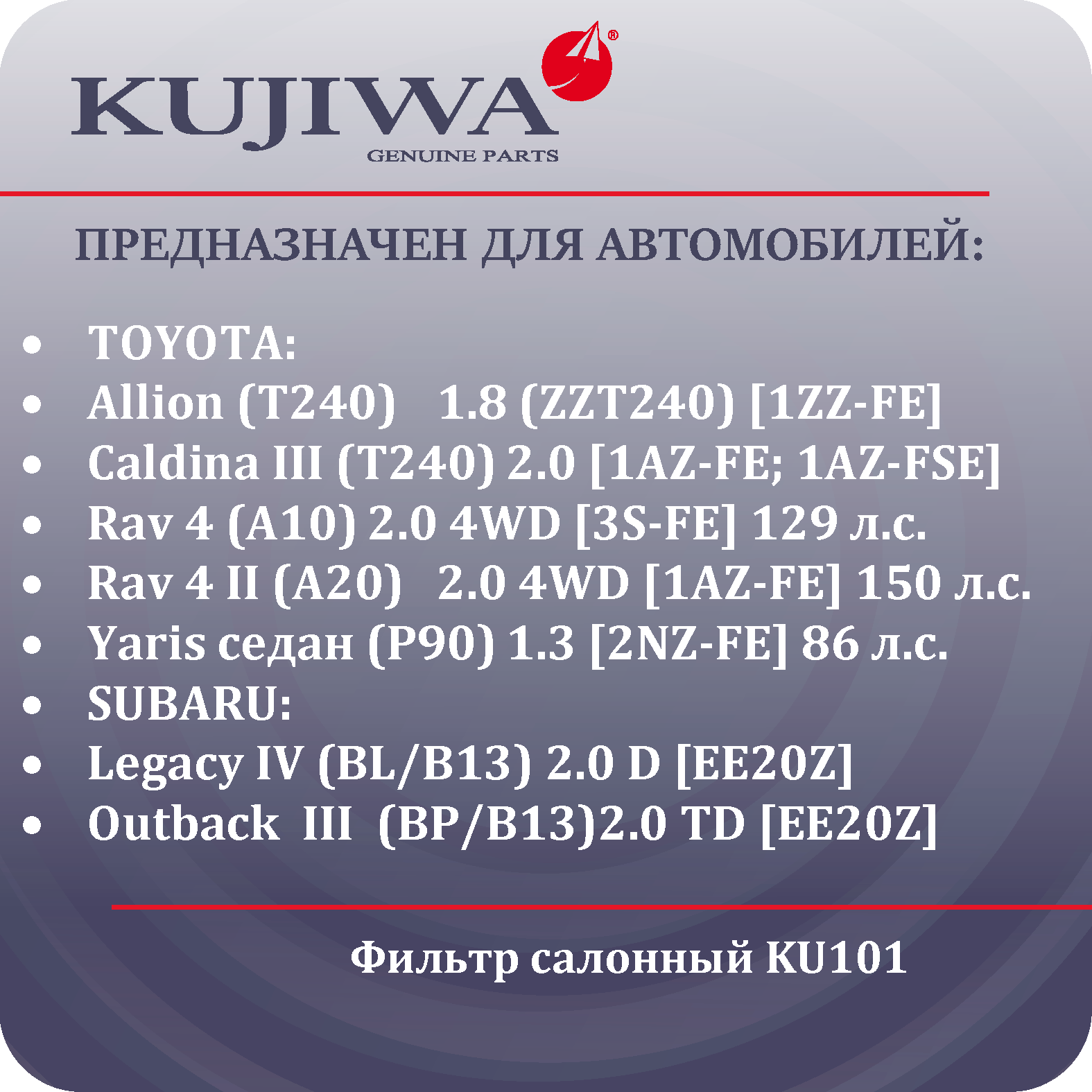 Фильтр салонный KU101 KUJIWA для TOYOTA RAV4 Yaris 0897400820 информация: