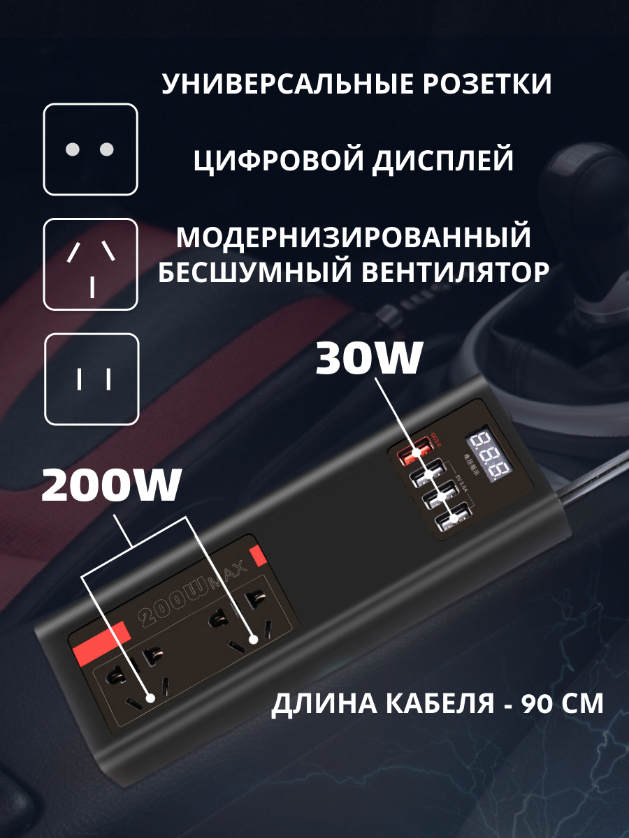 Отзывы на Инвертор автомобильный 12 - 220, преобразователь из прикуривателя на вилку 220 вольт, розетка в машину, переходник на 220 вольт