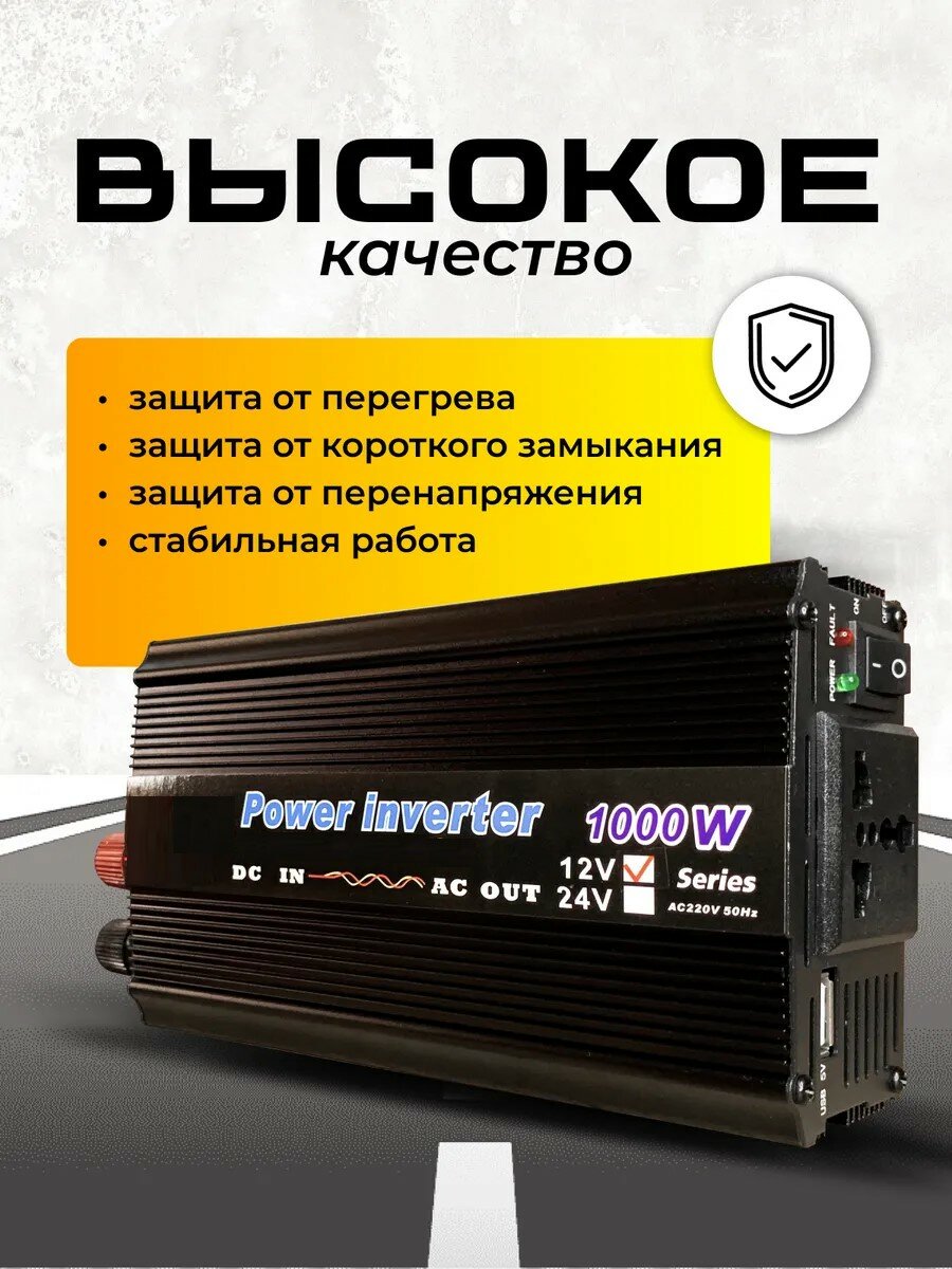Инвертор автомобильный 12 В, автомобильный инвертор 220, автомобильный преобразователь напряжения 1000Вт, 1 USB, защита от перегрева информация: