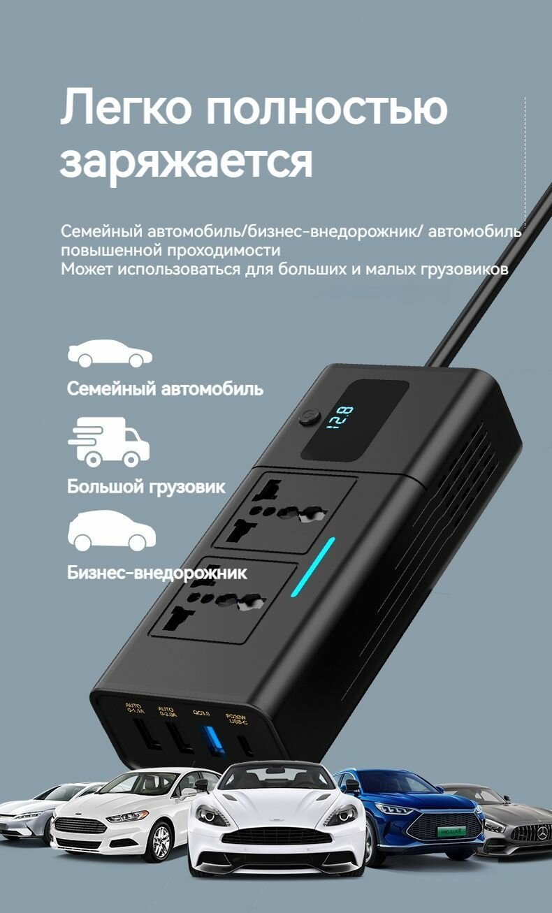 Отзывы на Автомобильный инвертор Baliciga 12в - 220в, 200 вт, для в прикуриватель, 4 USB, Подходит для BMW/Mercedes/Toyota/Geely/LADA/Lexus/Daewoo и других