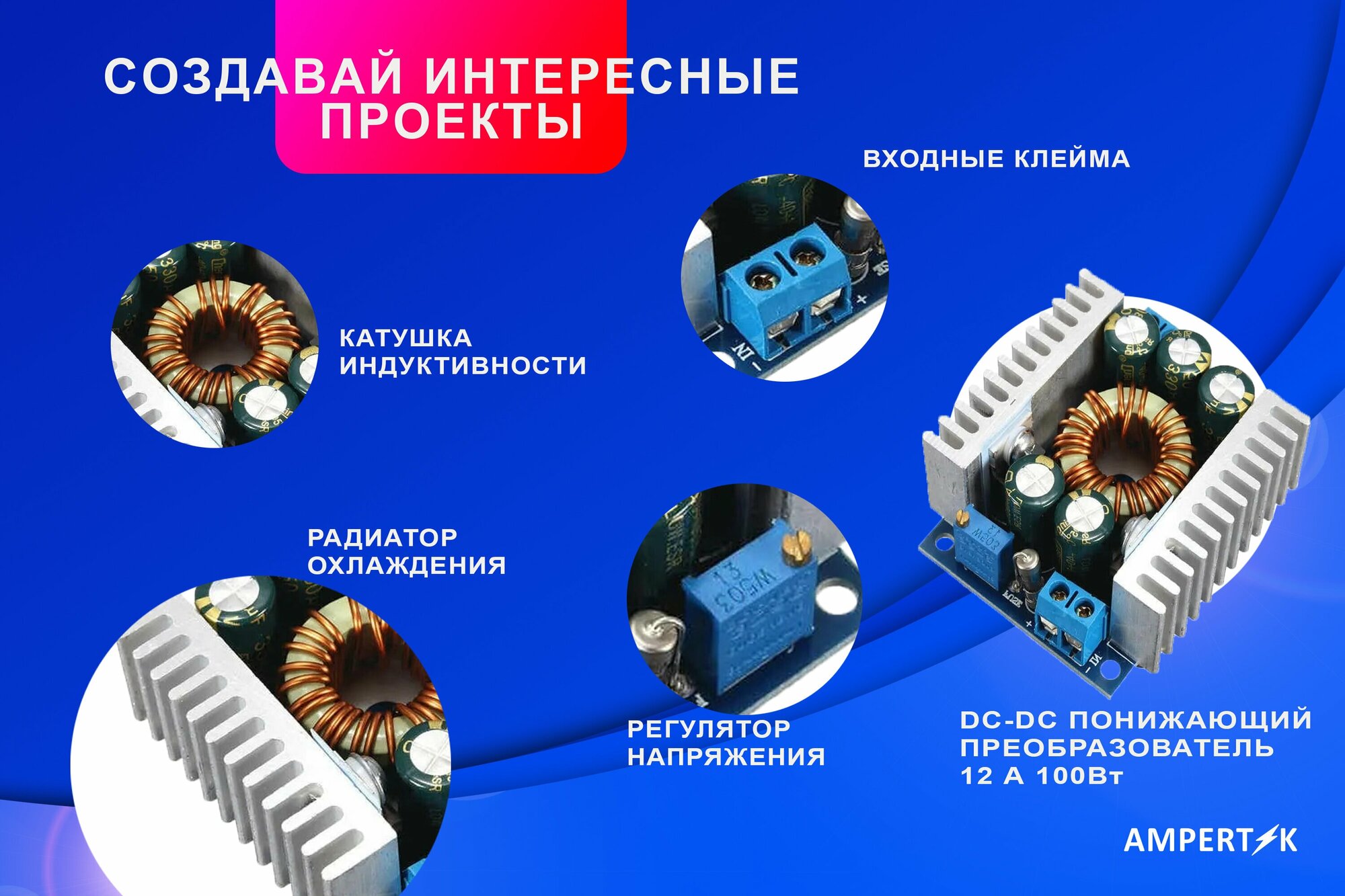 10 цен на DC-DC преобразователь 12А Ampertok 100Вт - 1 шт.