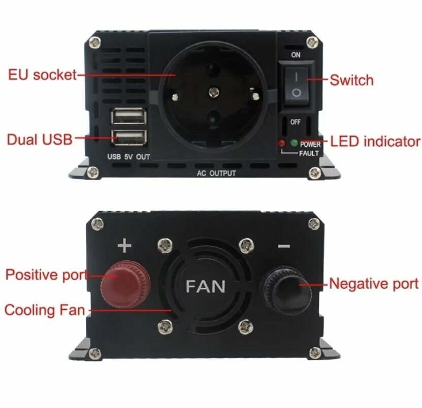 Power Inverter 3000 EcoHitek Автомобильный инвертор напряжения 12 - 220В (пост нагрузка до 1500 Вт). Подключение приборов, эл. инструмента.