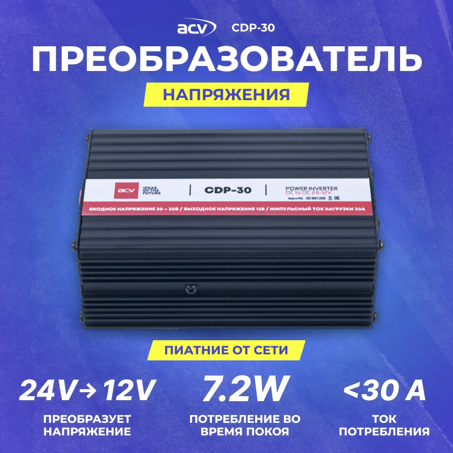 10 цен на Преобразователь напряжения 24-12В ACV CDP-30 ток до 30А
