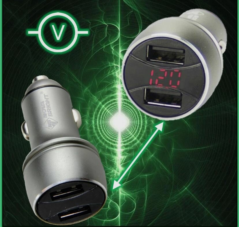 10 цен на Зарядное устройство для моб.устройств, 2 USB-порта, 2100мА + цифровой LED вольтметр, 12/24В