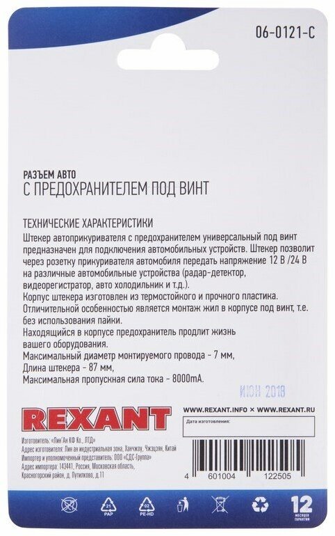 Отзывы на Штекер автоприкуривателя Rexant с предохранителем, под винт {06-0121-C}