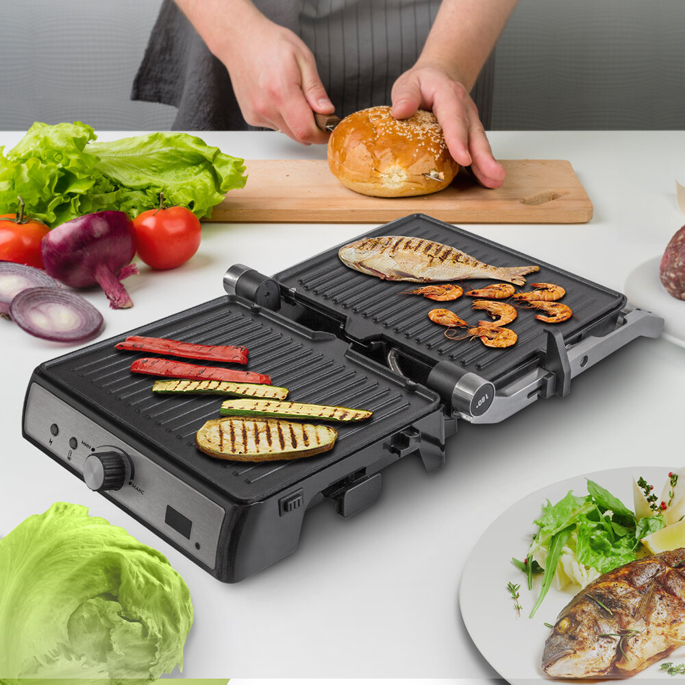 | Дополнительная информация | Съемный термощуп, LED-дисплей, Съемные жарящие поверхности, Ненагревающаяся эргономичная ручка, Открывается на 180°, Индикаторы питания и готовности, Нескользящие прорезиновые ножки регулируемые по высоте |