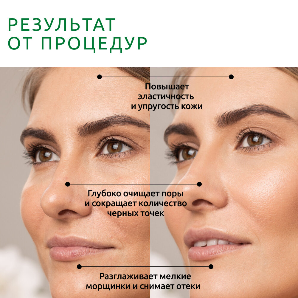 | Эффект | лифтинг / осветление пигментных пятен / повышение упругости кожи / разглаживание морщин / ровный цвет лица / улучшение кровоснабжения / уменьшение отеков / устранение черных точек |