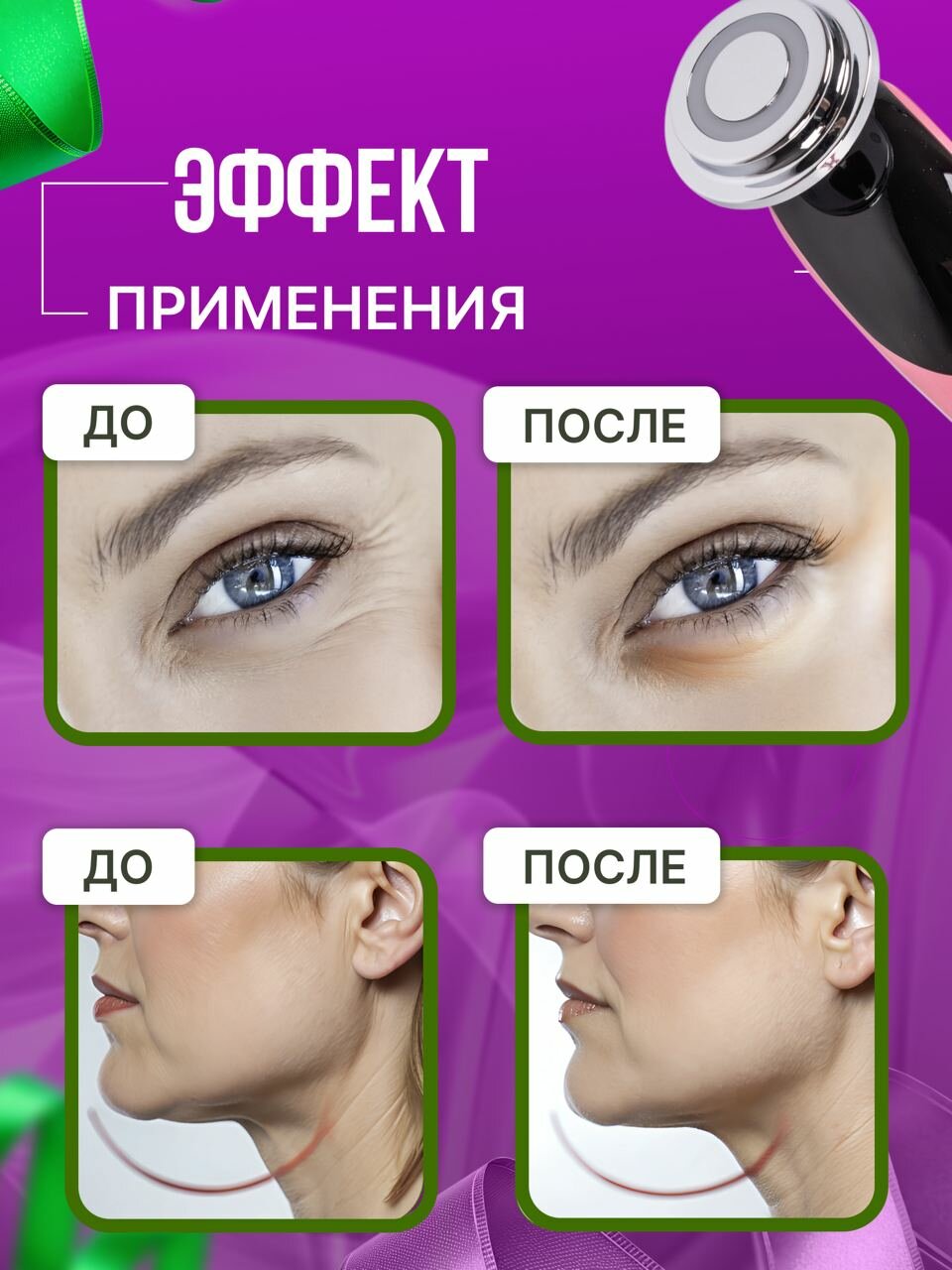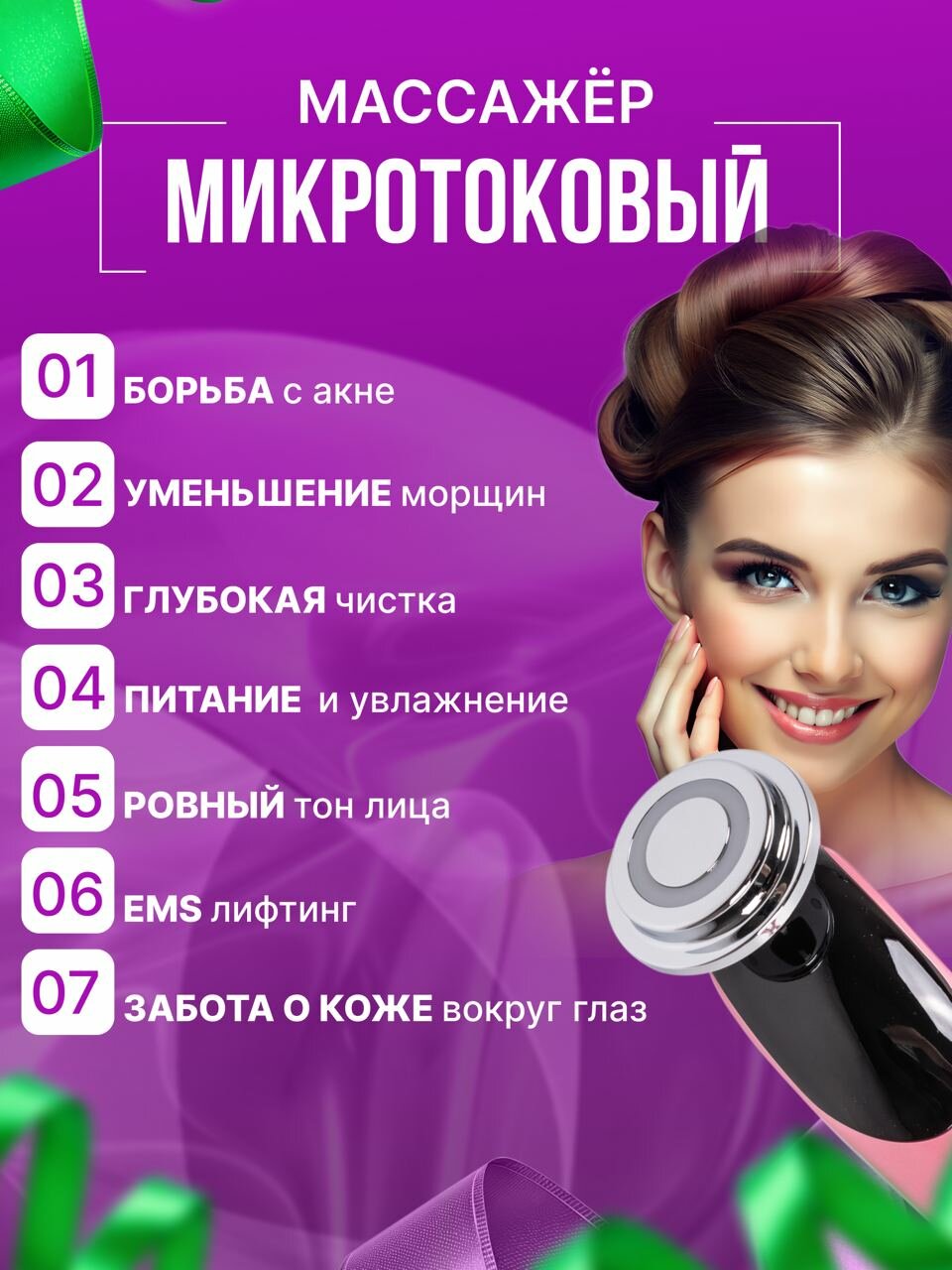 Назначение | антивозрастной уход / лечение акне / массаж / очищение / Лечение прыщей / Лимфодренаж / Лифтинг / Разглаживание морщин |