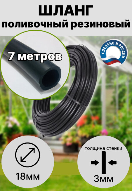 Шланг для полива резиновый/ поливочный/ кварт d 18 мм(3/4) длина 7 метров всесезонный не армированный ДомовоД ШРП18-7 информация:
