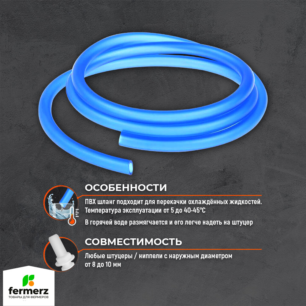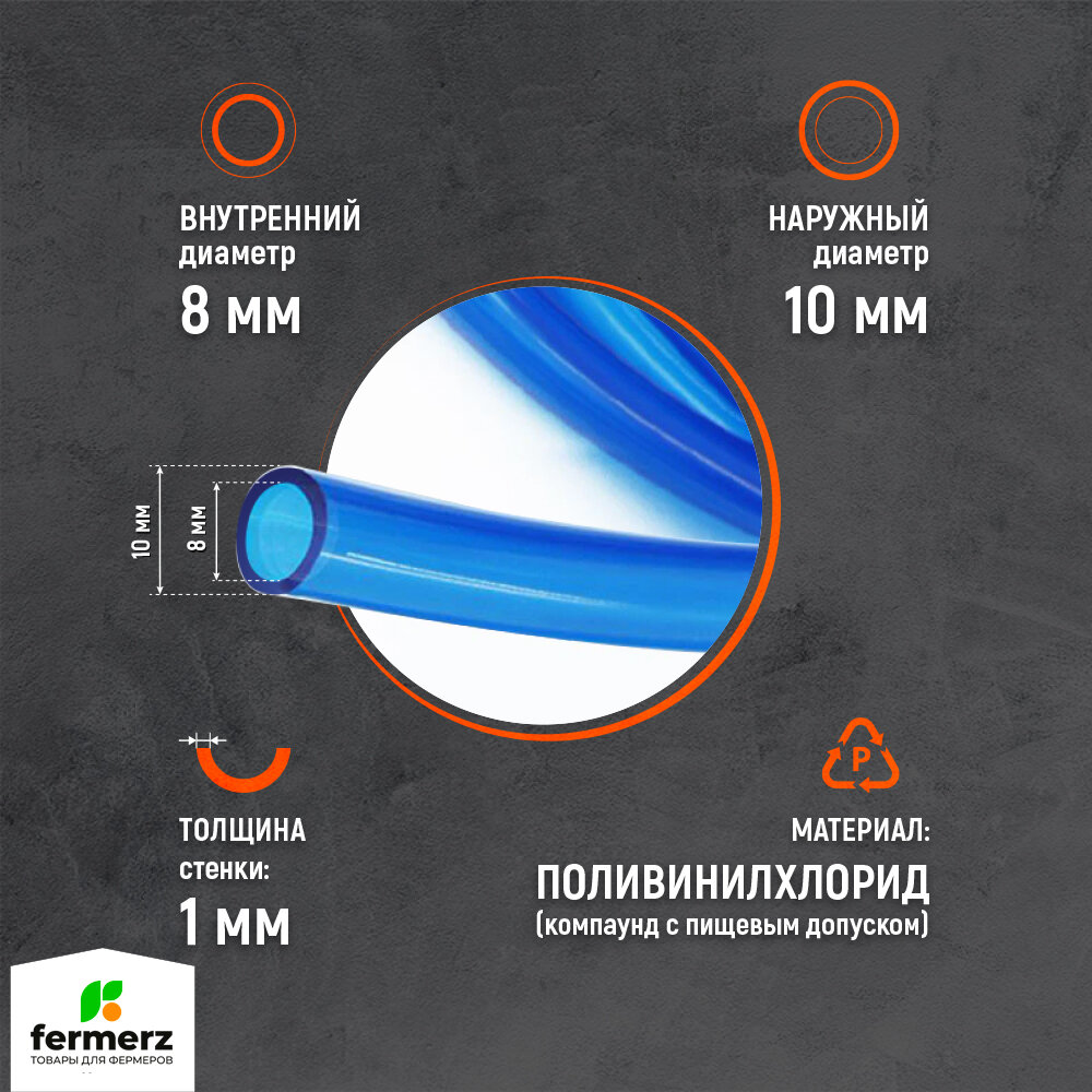 10 цен на Шланг пищевой ПВХ 8 на 1 мм, толщина 1мм, бухта 5м, синий полупрозрачный