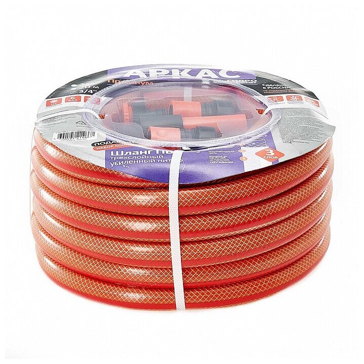 Шланг поливочный Д=3/4" (20м) арм. 3-х слойный Гидроагрегат аркас премиум (набор коннекторов)