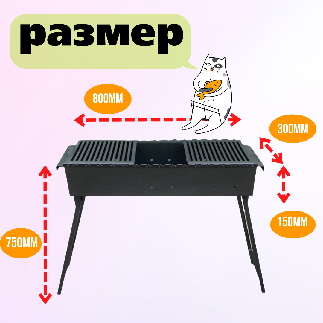 10 цен на Мангал складной 800 мм. с полками-решетками гриль, сталь 5 мм.