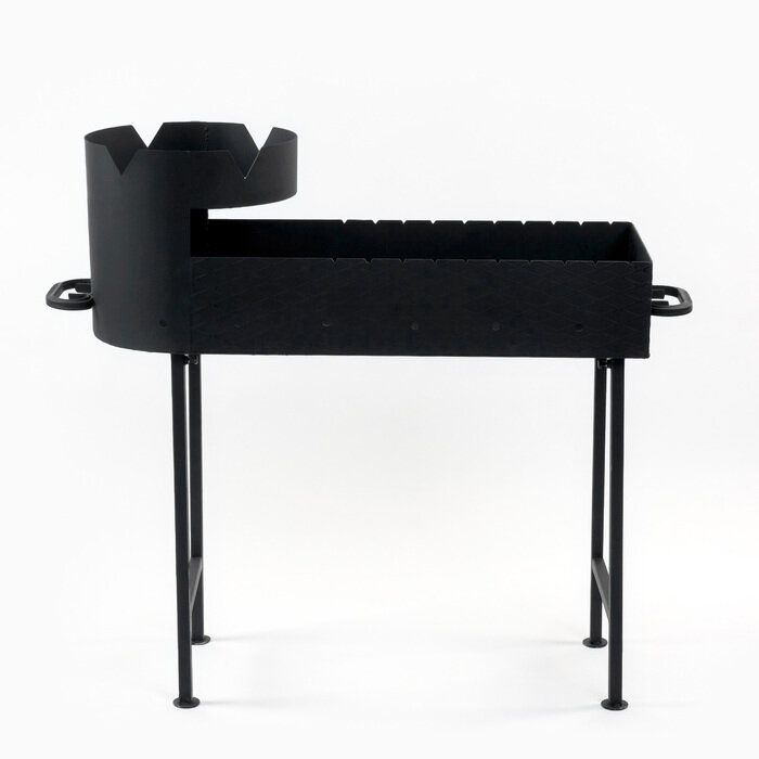 Мангал 800 мм. с полкой-решёткой и полкой под казан, сталь рифленая-усиленная 3 мм. разборный, с полкой под дрова