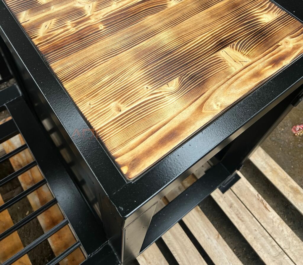 Мангал 800 мм. с полкой-решёткой и полкой под казан, сталь рифленая-усиленная 3 мм. разборный, с полкой под дрова
