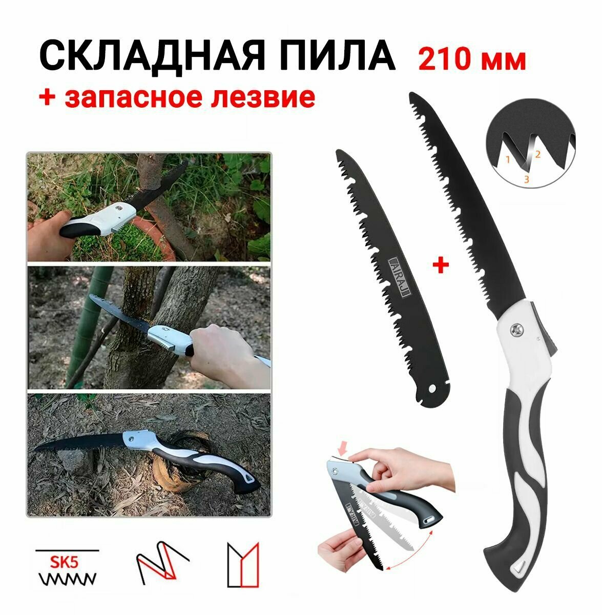 10 цен на Складная пила AIRAJ + лезвие 210 мм / ручная, садовая, по дереву, с фиксацией лезвия