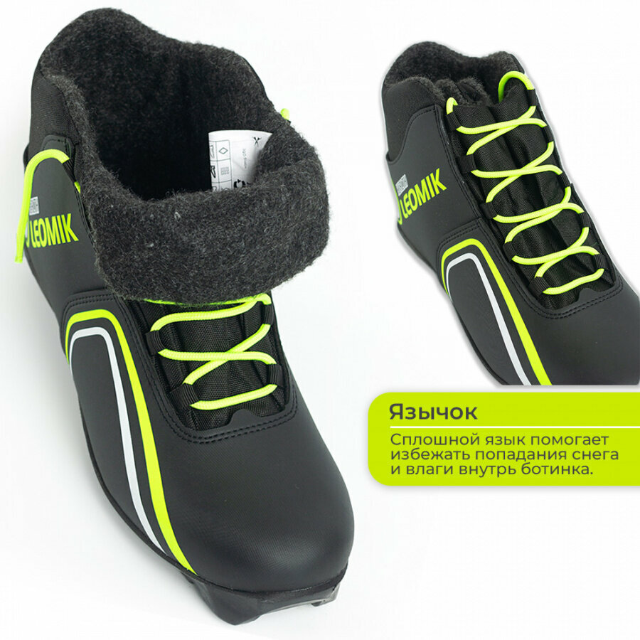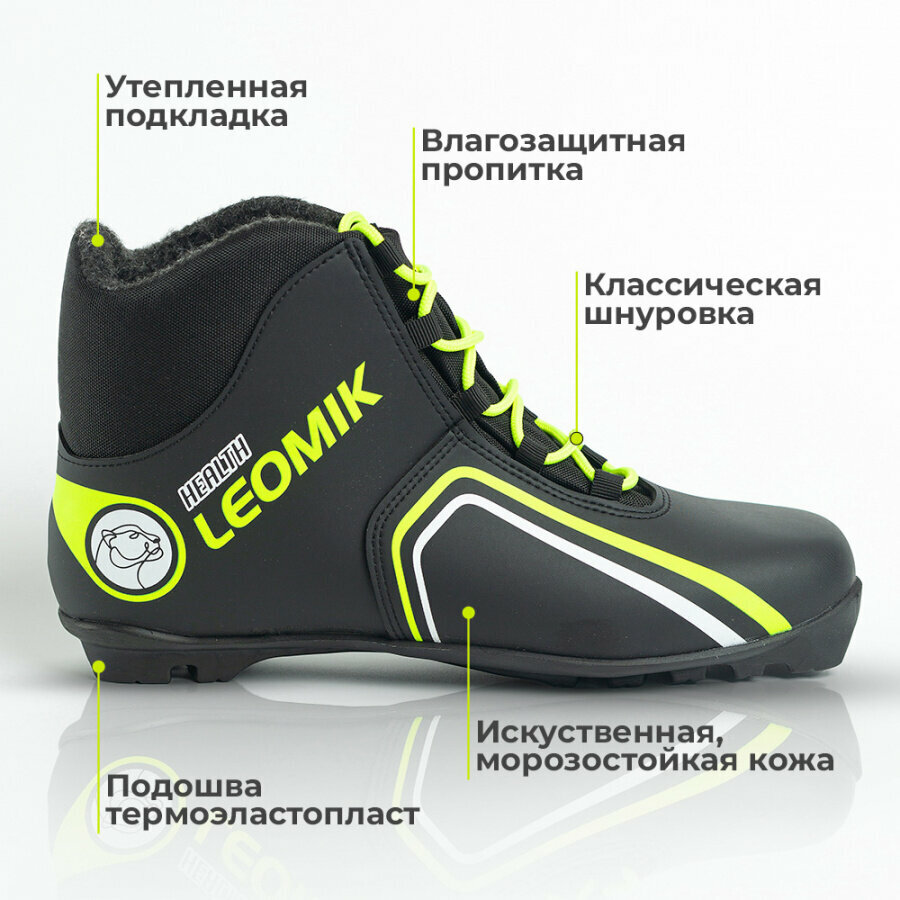 Ботинки лыжные Leomik Health (green) черные размер 37 для беговых прогулочных лыж крепление NNN информация: