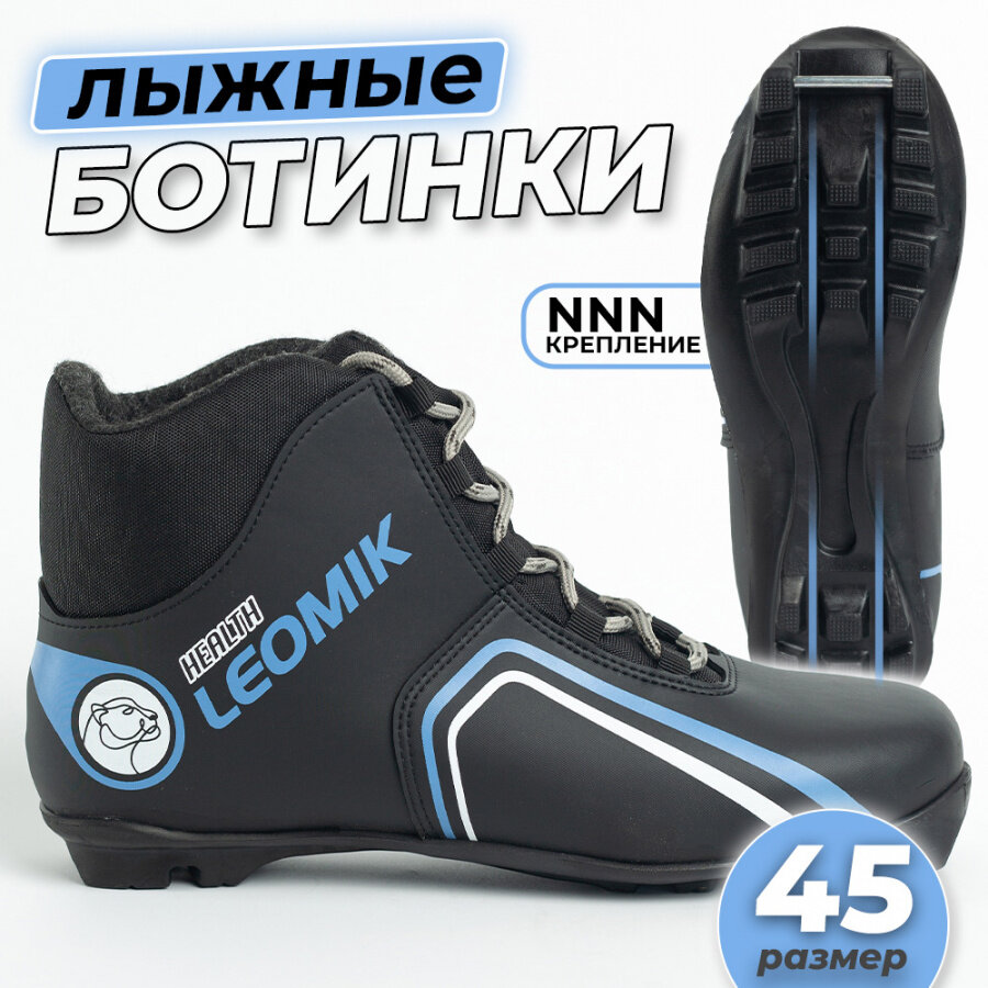 Отзывы на Ботинки лыжные Leomik Health (grey) черные размер 45 для беговых прогулочных лыж крепление NNN