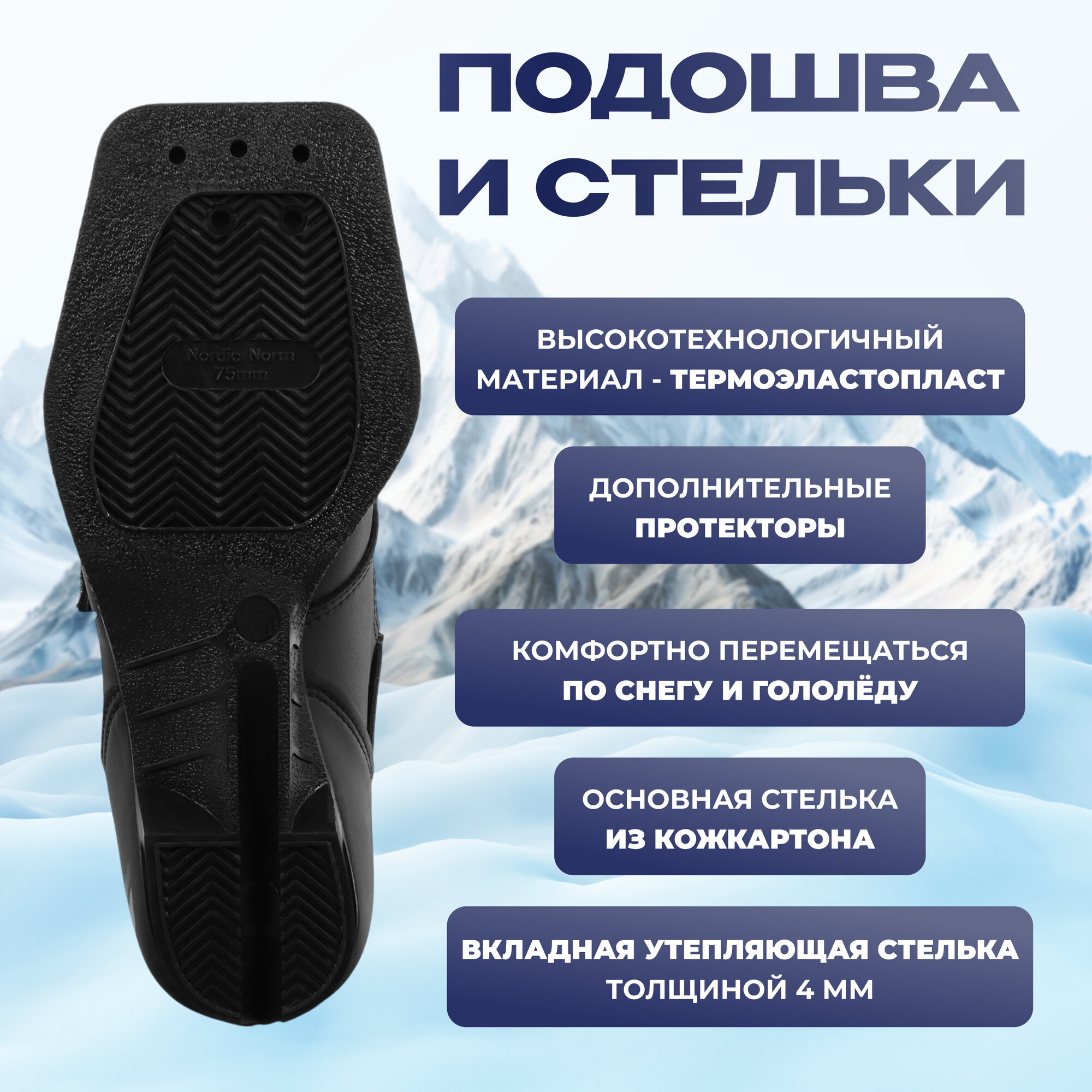 Ботинки лыжные Winter Star classic, цвет чёрный, лого серый, 75