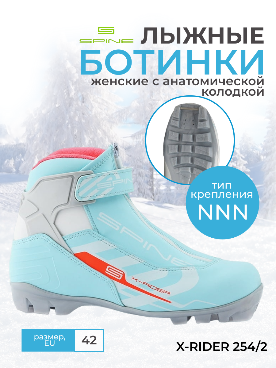 10 цен на Ботинки лыжные NNN SPINE X-Rider Модель 254/2 (Серия SPORT), бирюзовые/белые, размер 42